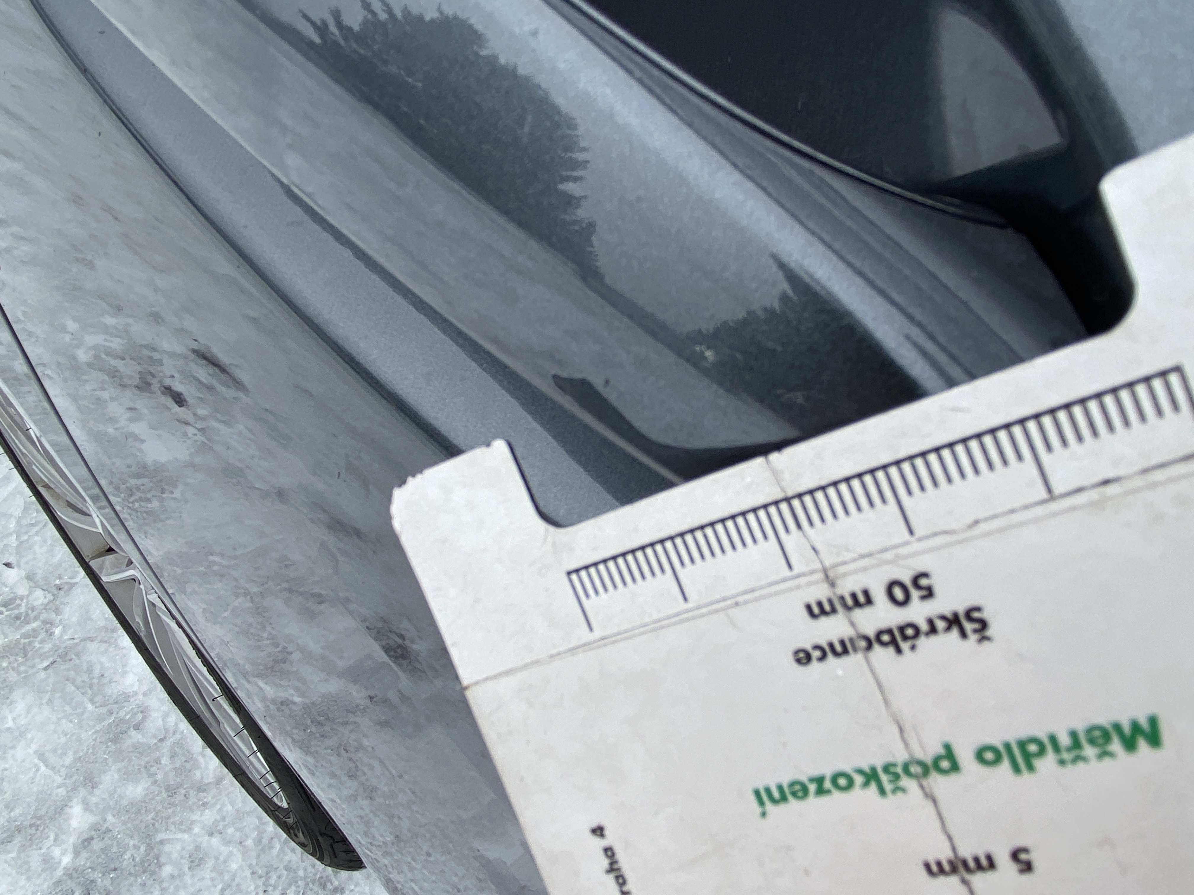 Oděrky a škrábance po obvodu karosérie, přední část karosérie je poškozená od kamínků, odřený přední nárazník, odřneé levé přední dveře, mírně odřené levé zadní dveře, mírně odřený zadní nárazník, interiér vozidla opotřeben,