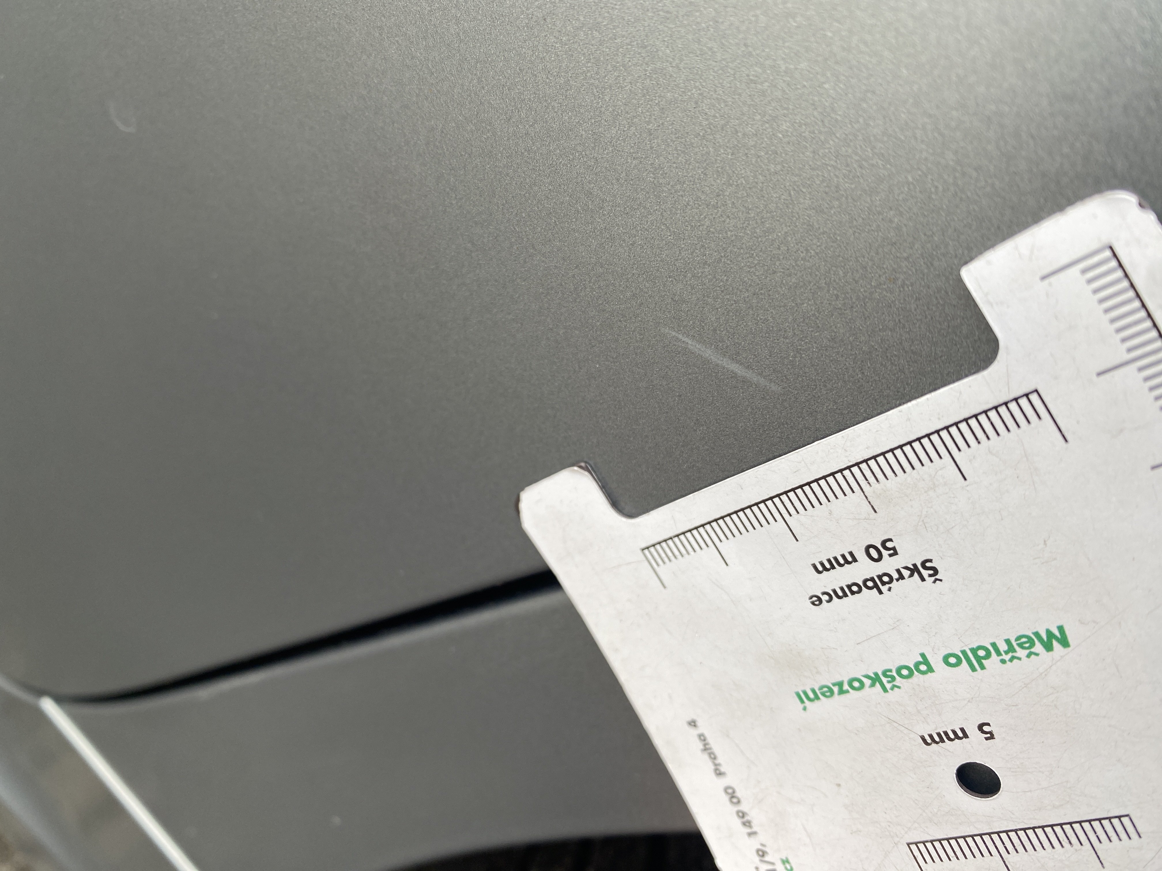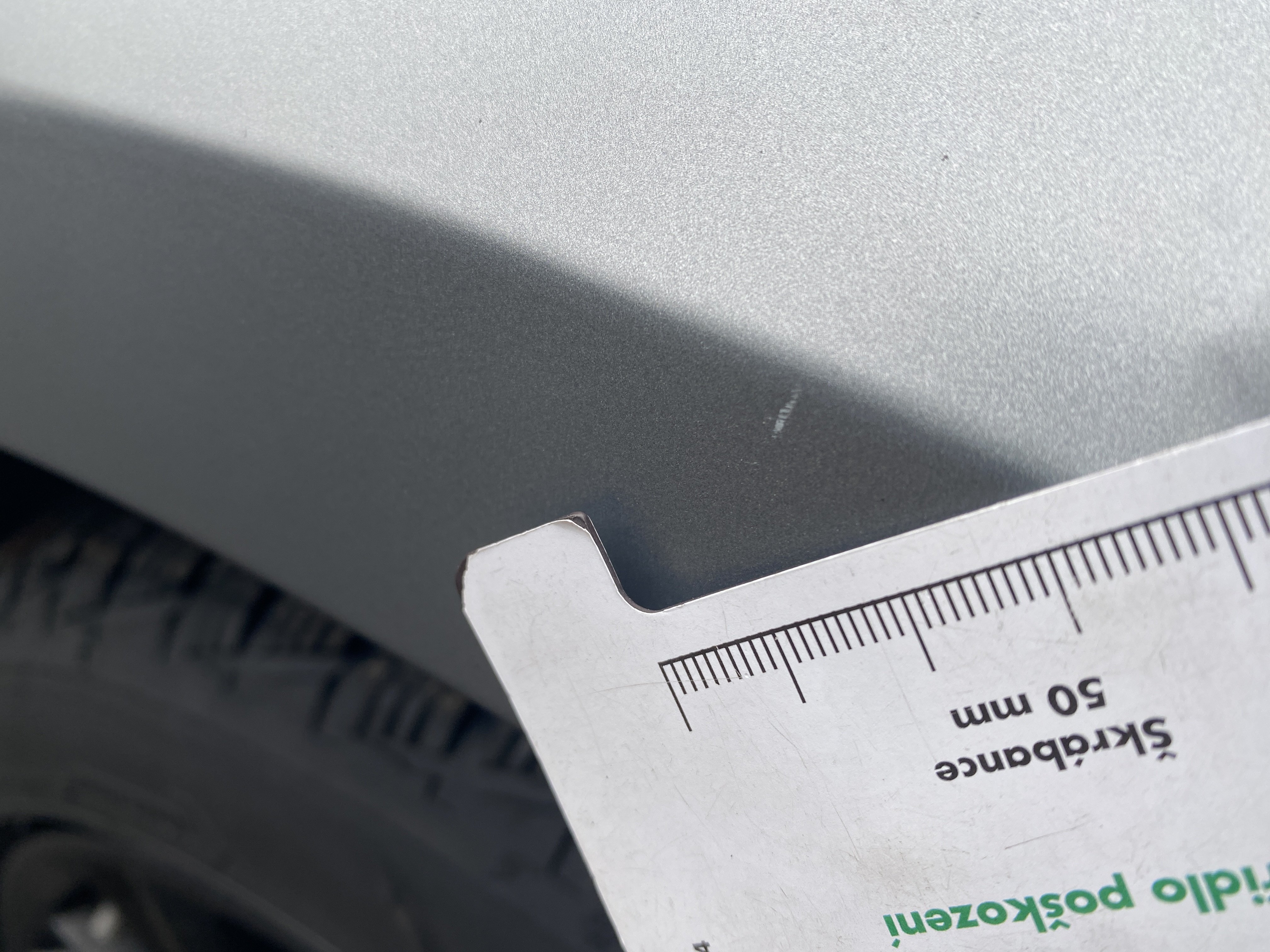 Oděrky a škrábance po obvodu karosérie, přední část karosérie je poškozená od kamínků, mírně odřený lem pravého předního blatníku, odřený přední nárazník, mírně odřené levé zadní dveře, mírně odřený kryt pravého zpětného zrcátka, interiér vozidla opotřeben,